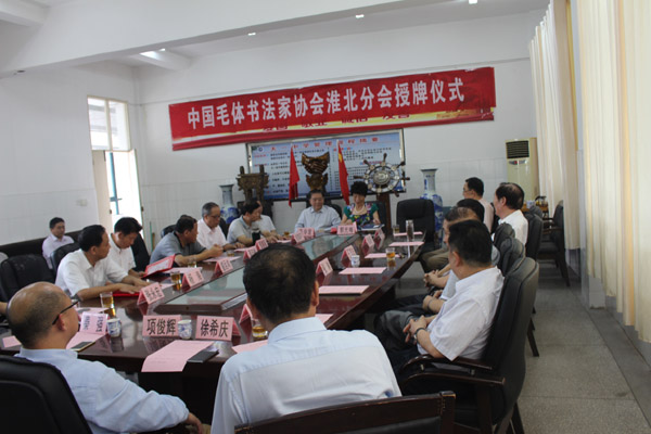 2016年9月10號上午10時,中國毛體書法家協(xié)會執(zhí)行主席張琳、淮北市原市委書記王成法、淮北市原市委秘書長楊海、天象集團董事長孔令發(fā)等人參加了中國毛體書法家協(xié)會淮北分會揭牌儀式。中國毛體書法家協(xié)會淮北分會的成立填補了淮北書畫文藝界的一大空白。