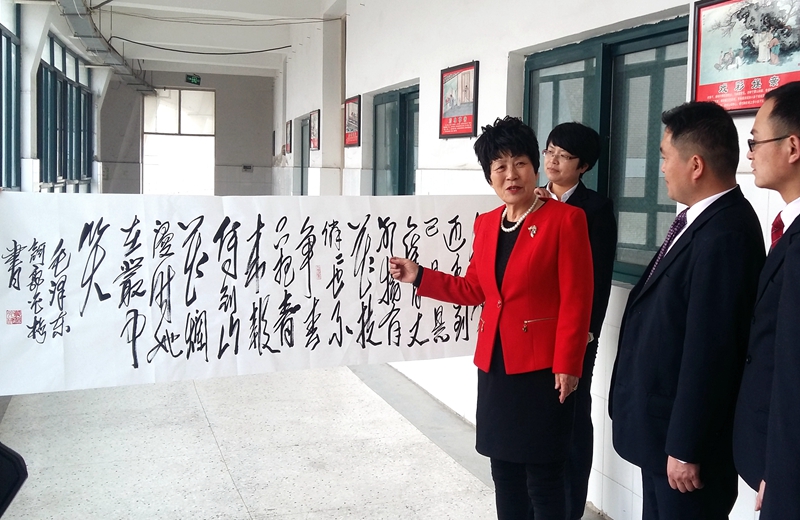 在“書(shū)法進(jìn)校園”活動(dòng)現(xiàn)場(chǎng),郭光梅校長(zhǎng)帶領(lǐng)學(xué)校師生學(xué)習(xí)書(shū)法,親自講授學(xué)習(xí)書(shū)法的心得,師生們學(xué)書(shū)法、練書(shū)法、品書(shū)法,整個(gè)校園充滿著濃濃的書(shū)法藝術(shù)氛圍。