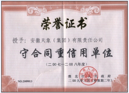 2007-2008年淮北市守合同重信用單位榮譽(yù)證書